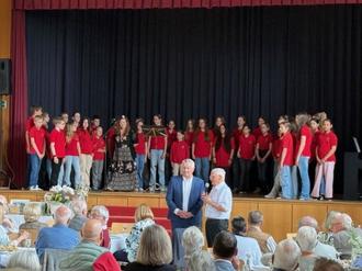 Das Wetter zeigte sich zunächst durchwachsen, doch pünktlich zum Beginn der Feierlichkeiten kam die Sonne hervor – ein stimmungsvolles Zeichen für den besonderen Tag. Der Vormittag war geprägt von Herzlichkeit, Musik und bewegenden Momenten. Der Oranien-Campus Altendiez sorgte mit einem musikalischen Beitrag des Schulchors unter der Leitung von Jessica Burggraf und Johannes Kölsch für einen gelungenen Auftakt. Sänger