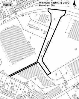 Gemäß § 36 Landesstraßengesetz (LStrG) für Rheinland-Pfalz vom 01.08.1977, in der derzeit geltenden Fassung, und aufgrund des Beschlusses des Stadtrats Diez vom 21.03.2024 werden die nachstehend genannten Straßen für den öffentlichen Verkehr gewidmet.
