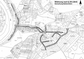 Gemäß § 36 Landesstraßengesetz (LStrG) für Rheinland-Pfalz vom 01.08.1977, in der derzeit geltenden Fassung, und aufgrund des Beschlusses des Gemeinderats Balduinstein vom 14.04.2023 werden die nachstehend genannten Straßen dem öffentlichen Verkehr gewidmet.