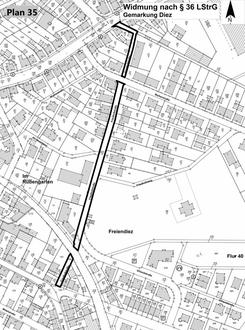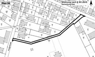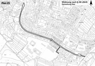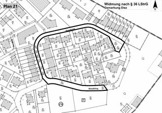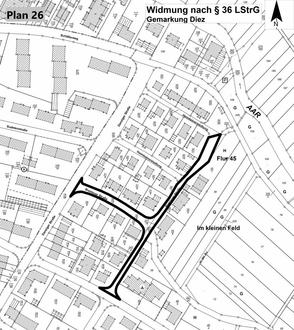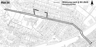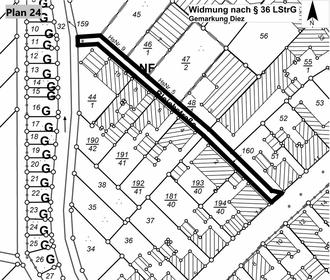 Gemäß § 36 Landesstraßengesetz (LStrG) für Rheinland-Pfalz vom 01.08.1977, in der derzeit geltenden Fassung, und aufgrund des Beschlusses des Stadtrats Diez vom 21.03.2024 werden die nachstehend genannten Straßen für den öffentlichen Verkehr gewidmet.