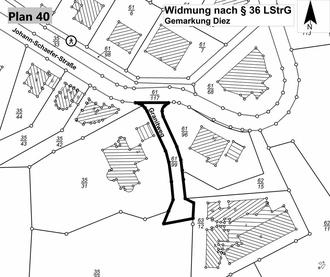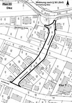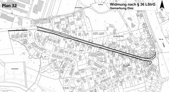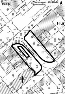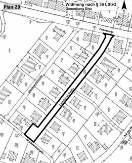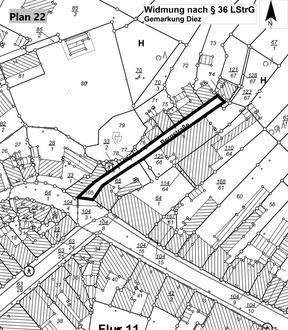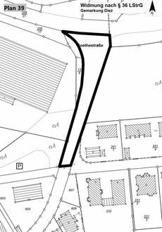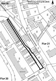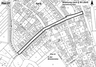 Die Widmung und die Lagepläne können während der Öffnungszeiten bei der Verbandsgemeindeverwaltung Diez, Louise-Seher-Straße 1, 3. Stock, Zimmer D 03, 65582 Diez, eingesehen werden.