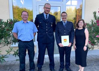 Kerstin und Frank Gebele wurden für jeweils 15 Jahre aktiven Dienst ausgezeichnet, außerdem erhielt Christof Lenz eine Ehrung für beeindruckende 45 Jahre treue und engagierte Mitarbeit in der Feuerwehr.