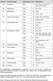 | Plan-Nr. | Verkehrsanlage | Gemarkung | Flur | Flurstück/-e |