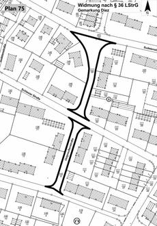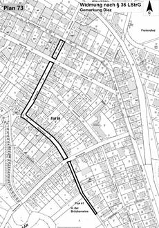 Gemäß § 36 Landesstraßengesetz (LStrG) für Rheinland-Pfalz vom 01.08.1977, in der derzeit geltenden Fassung, und aufgrund des Beschlusses des Stadtrats Diez vom 21.03.2024 werden die nachstehend genannten Straßen für den öffentlichen Verkehr gewidmet.