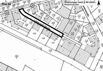 Die beigefügten unmaßstäblichen Lagepläne von Nr. 60 bis 80, in denen die gewidmeten Flächen mit dicker schwarzer Linie markiert sind, sind Bestandteil dieser Widmungsverfügung.