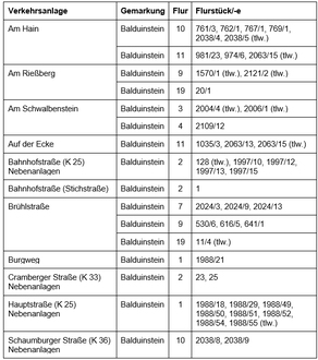 Aufgrund eines redaktionellen Fehlers in der letzten Amtsblattausgabe wird die Übersicht der gewidmeten Straßen nachstehend erneut veröffentlicht. Im Übrigen verweisen wir auf die letzte Ausgabe (Widmungstext, Skizzen).