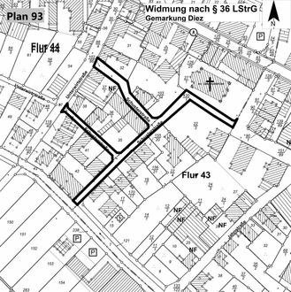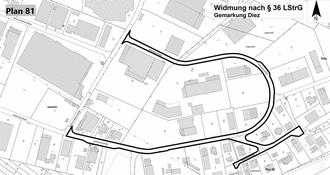 Gemäß § 36 Landesstraßengesetz (LStrG) für Rheinland-Pfalz vom 01.08.1977, in der derzeit geltenden Fassung, und aufgrund des Beschlusses des Stadtrats Diez vom 21.03.2024 werden die nachstehend genannten Straßen für den öffentlichen Verkehr gewidmet.