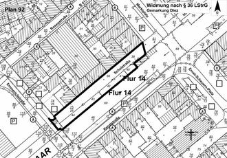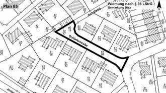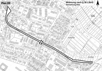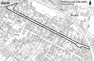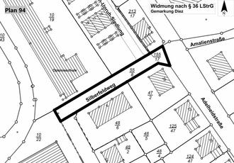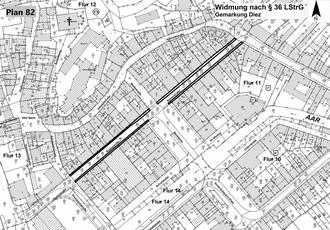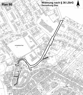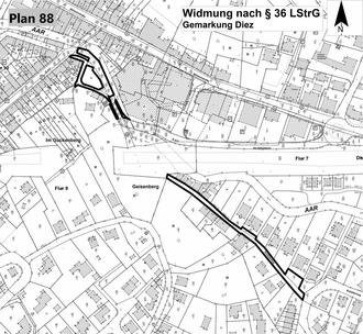 Die Widmung und die Lagepläne können während der Öffnungszeiten bei der Verbandsgemeindeverwaltung Diez, Louise-Seher-Straße 1, 3. Stock, Zimmer D 03, 65582 Diez, eingesehen werden.