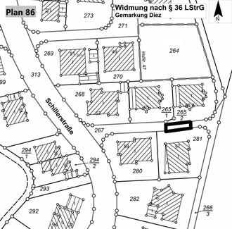 | 86 | Schillerstraße (tlw.) | Diez | 39 | 266/3 (tlw.) |