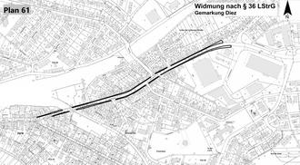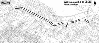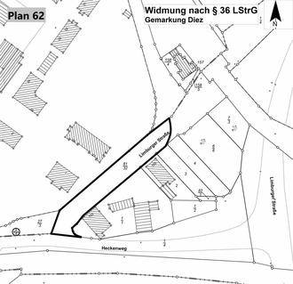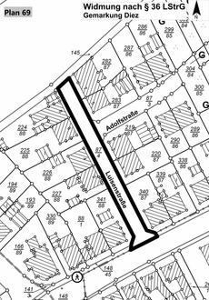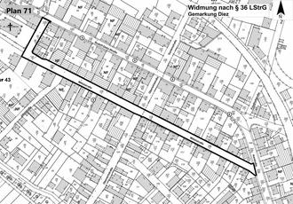 Die Widmung und die Lagepläne können während der Öffnungszeiten bei der Verbandsgemeindeverwaltung Diez, Louise-Seher-Straße 1, 3. Stock, Zimmer D 03, 65582 Diez, eingesehen werden.