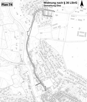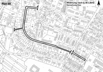 Gemäß § 36 Landesstraßengesetz (LStrG) für Rheinland-Pfalz vom 01.08.1977, in der derzeit geltenden Fassung, und aufgrund des Beschlusses des Stadtrats Diez vom 21.03.2024 werden die nachstehend genannten Straßen für den öffentlichen Verkehr gewidmet.