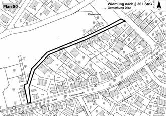 Die beigefügten unmaßstäblichen Lagepläne von Nr. 60 bis 80, in denen die gewidmeten Flächen mit dicker schwarzer Linie markiert sind, sind Bestandteil dieser Widmungsverfügung.