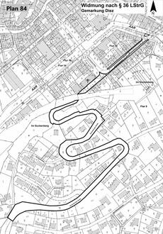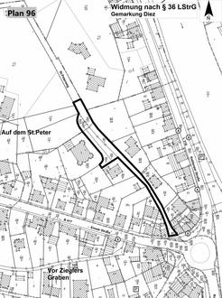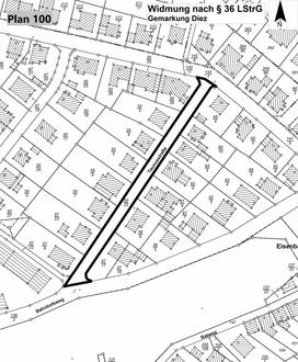 Die Widmung und die Lagepläne können während der Öffnungszeiten bei der Verbandsgemeindeverwaltung Diez, Louise-Seher-Straße 1, 3. Stock, Zimmer D 03, 65582 Diez, eingesehen werden.