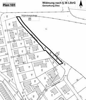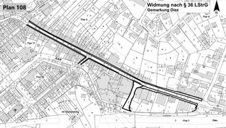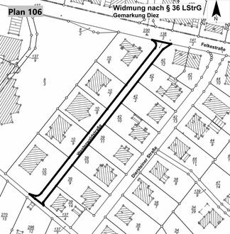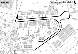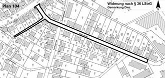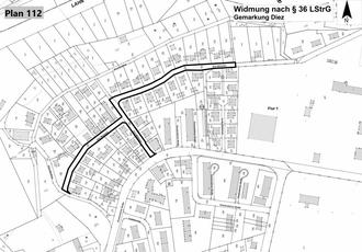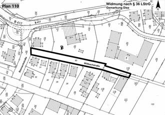 Die Widmung und die Lagepläne können während der Öffnungszeiten bei der Verbandsgemeindeverwaltung Diez, Louise-Seher-Straße 1, 3. Stock, Zimmer D 03, 65582 Diez, eingesehen werden.