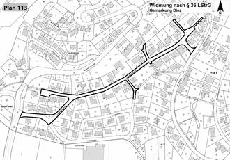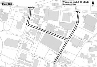 Gemäß § 36 Landesstraßengesetz (LStrG) für Rheinland-Pfalz vom 01.08.1977, in der derzeit geltenden Fassung, und aufgrund des Beschlusses des Stadtrats Diez vom 21.03.2024 werden die nachstehend genannten Straßen für den öffentlichen Verkehr gewidmet.
