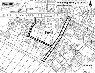 | 108 | Wilhelmstraße Nebenanlagen | Diez | 4 | 104/5, 104/7, 104/8, 104/13 |