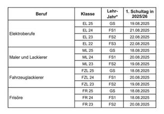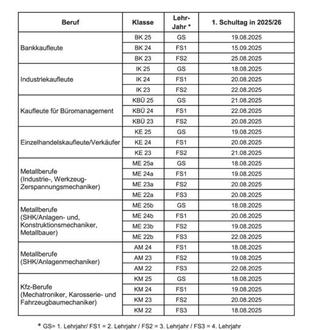 Abweichungen ergeben sich nur für den 18.08.2025. Hier werden die Grundstufen, die montags ihren regulären Berufsschultag haben, von 7:30 Uhr bis 10:00 Uhr eingeschult.