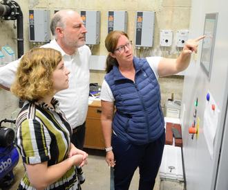 Die Vertragsunterzeichnung erfolgte im Rahmen eines Vor-Ort-Termins im Freibad Birlenbach. Und bei dieser Gelegenheit informierte sich Bürgermeisterin Maren Busch gemeinsam mit dem Ersten Beigeordneten Torsten Loosen sowie der für das Freibad zuständigen Verwaltungskraft Lisann Pommerenke über den aktuellen Zustand des Bades und der dazugehörigen Technik – hier hatte Kirsten Darda zuletzt erheblich investiert.