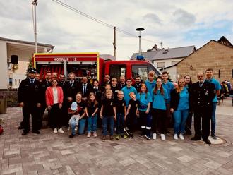 Zum Abschluss des offiziellen Teils stellte sich die gesamte Einheit Steinsberg zu einem Gruppenfoto vor ihrem neuen KLF, während die zahlreichen Gäste bei Herzhaftem vom Grill noch lange auf dem festlich geschmückten Dorfplatz verweilten.