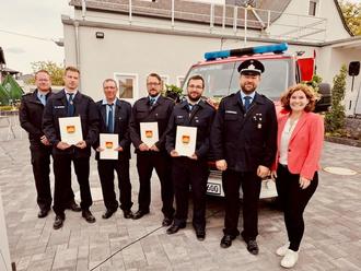 Im Rahmen der Veranstaltung wurden auch vier Beförderungen durch Bürgermeisterin Maren Busch und den stellvertretenden Wehrleiter Sebastian Kuhmann vorgenommen: Steffen Hackbarth und Simon Göbel wurden zum Oberfeuerwehrmann ernannt, Uwe Meffert und Mike Hofmann zum Hauptfeuerwehrmann.