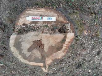 Bei dem Baumbestand am Birlenbacher Friedhof kam es in den Vorjahren wiederholt zum Absterben von Bäumen und zu Windwürfen. Wegen der daraus resultierenden Gefahr wurden bereits in der Vergangenheit mehrfach (zuletzt 2021) nicht mehr standsichere Bäume in diesem Bereich gefällt. Aufgrund der extremen Temperaturen und der geringen Niederschläge des Jahres 2022 zeigten sich nunmehr erneut Trockenheitsschäden an der Mehrzahl der noch stehenden Bäume. Daher wurde nach einer erneuten Baumschau entschieden, alle Bäume am 01.09.2022 zu fällen. Bei einer Nachkontrolle am 02.09.2022 wurde an vielen der gefällten Bäume Wurzel- oder Stammfäule festgestellt, wie das nachstehende Lichtbild exemplarisch zeigt. Es bestätigte sich daher auch aus diesem Gesichtspunkt, dass aus Gründen der Verkehrssicherung der Baumbestand nicht fortbestehen konnte. In den kommenden Jahren wird das hier angesprochene Problem auch weitere Bereich in der Gemarkung Birlenbach betreffen. Am Rathausvorplatz oder auch am Friedhof Fachingen werden weitere Bäume gefällt werden müssen. An den Lahnhängen sind ebenfalls großflächig Baumfällarbeiten geplant. Der Klimawandel hat zur Folge, dass aus Verkehrssicherungsgründen die Ortsgemeinde nicht abwarten kann, bis jeder Baum "von alleine umfällt". Der jetzige Zustand am Friedhof Birlenbach soll jedoch nicht dauerhaft fortbestehen. Eine Neuanpflanzung ist beabsichtigt.