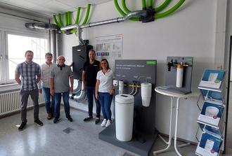 Die Fa. Bosch-Thermotechnik, vertreten durch Herrn Tobias Schuht, stiftete eine moderne Lüftungsanlage mit Wärmerückgewinnung (KWL-Anlage) und ein Splitt-Klimagerät zum Heizen und Kühlen. Die Fa. Grünbeck, vertreten durch Frau Katharina Pohland, spendierte eine Enthärtungsanlage inklusive Dosierstation neuester Generation, einen Wasserfilter für die Hauseingangsstation mit automatischer Rückspülung sowie eine moderne Heizungsfüllstation mit Rohrtrenner, Druckminderer und Vollentsalzungsanlage. Die KWL-Anlage und das Klimasplittgerät sorgen ab sofort für gefilterte Frischluft und insbesondere in den Sommermonaten für angenehme Lerntemperaturen im Klassenraum der Auszubildenden.