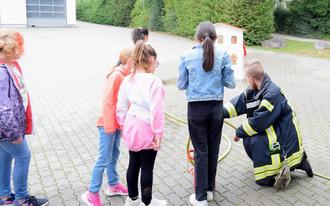Wissensdurst und Tatendrang brachten die Schulkinder mit, kindgerechtes Vermitteln von Wissen und sehr viel Enthusiasmus beim Demonstrieren und Anlernen boten die Feuerwehrleute - hier die vierten Klassen der Karl-von-Ibell-Schule auf dem Gelände der Zentralen Feuerwache Diez