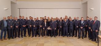 Busch dankte in diesem Zusammenhang allen Feuerwehrangehörigen für ihr Engagement sowie der Wehrleitung und auch ihrem Stellvertreter, dem Ersten Beigeordneten Torsten Loosen, der sie auch in diesem Bereich sehr gut unterstütze und der gleichfalls zum Ehrungstermin in Schloss Oranienstein erschienen war. Landrat Jörg Denninghoff zeigte auf, dass die Floskel „24/7, 365 Tage im Jahr“ wohl nirgendwo so zutreffend sei wie bei der Freiwilligen Feuerwehr. Eine gut ausgerüstete und hochmotivierte Wehr sei gerade im ländlichen Raum unverzichtbar, zumal sie außerdem weite Teile des Gemeindelebens in vielfältiger Weise unterstütze oder gar erst möglich mache.