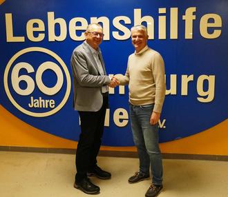 Der scheidende Vorsitzende der Lebenshilfe Limburg Diez, Werner Reingen (li.) gratuliert seinem Nachfolger Florian Brechtel.