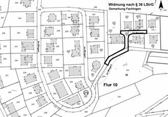 Zwei unmaßstäbliche Lagepläne, in der die gewidmeten Flächen mit dicker schwarzer Linie umrandet dargestellt sind, sind dieser Verfügung beigefügt und Bestandteil der Widmung.