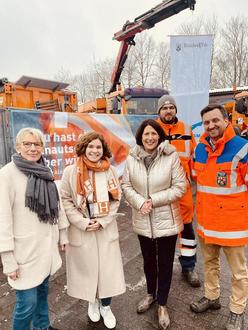 Zu Beginn des Besuchs verschaffte sich Ministerin Schmitt einen Eindruck vom aktuellen Baufortschritt der Brückenbaustelle in Balduinstein. Im Anschluss überreichte sie den Förderbescheid für die Sanierung der Aarbrücke in der Bismarckstraße in Diez an Stadtbürgermeisterin Annette Wick. Damit setzt das Land ein klares Zeichen für die Stärkung der kommunalen Verkehrsinfrastruktur. „Diese Projekte zeigen, wie wichtig kontinuierliche und hohe Investitionen in unsere Infrastruktur sind“, betonte Ministerin Schmitt. Gut ausgebaute Straßen und sichere Brücken seien eine zentrale Voraussetzung für Mobilität, Wirtschaftskraft und Lebensqualität im ländlichen Raum. Im Rahmen des Besuchs wurde zudem gemeinsam mit dem LBM die Kampagne „Mehr Achtung“ vorgestellt. Sie macht auf die Bedeutung von Respekt und Rücksichtnahme gegenüber den Beschäftigten aufmerksam, die tagtäglich für sichere Straßen sorgen – insbesondere im Winterdienst und in den Straßenmeistereien. Herr Bauch vom LBM hob hervor, dass die Arbeit auf der Straße ein hohes Maß an handwerklichem Können, Konzentration und Verantwortung erfordert. Ebenso wichtig seien Verständnis und Geduld der Verkehrsteilnehmerinnen und Verkehrsteilnehmer. Auch Stadtbürgermeisterin Annette Wick unterstrich, dass dieser Respekt gleichermaßen für die Mitarbeitenden des städtischen Bauhofs gelte. Die Kampagne „Mehr Achtung“ stehe genau für dieses Miteinander und ein wertschätzendes Verhalten im öffentlichen Raum.