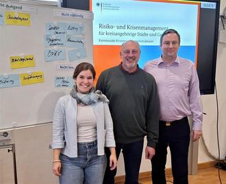 v.l.n.r.: Bürgermeisterin Maren Busch, Erster Beigeordneter Torsten Loosen und Josef Kanders vom Bundesamt für Bevölkerungsschutz und Katastrophenhilfe