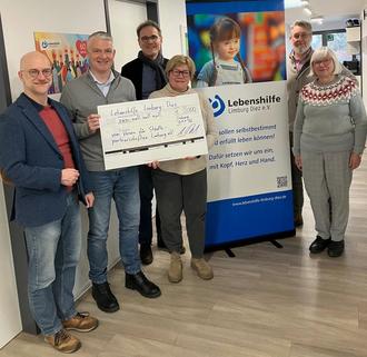 Im Rahmen eines Besuches der Lebenshilfe überreichten nun der 1. Vorsitzende Alexander Paul, seine Stellvertreterin Anja Dörner sowie Kassenwartin Petra Schmitt vom Städtepartnerschaftsverein die Spende an den Lebenshilfe-Vorsitzenden Florian Brechtel und die Lebenshilfe-Geschäftsführer Frank Strotmann und Markus Liebendörfer.