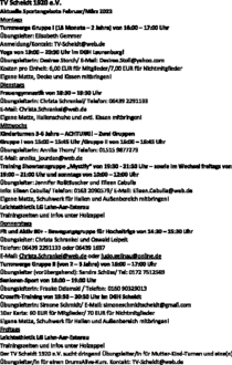 Übungsleiterin: Christa Schrankel/ Telefon: 06439 2291133