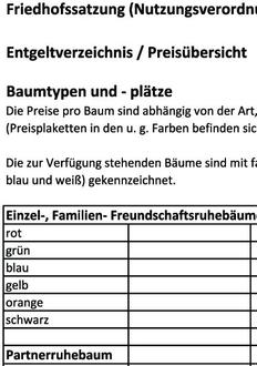 Für die Benutzung des „Ruhewald Horhausen“ sind gemäß § 13 der Friedhofssatzung Entgelte nach dem jeweils gültigen Entgeltverzeichnis an den Eigentümer zu entrichten. Dieses Entgeltverzeichnis wurde angepasst und ist als Anlage dieser Satzung beigefügt.