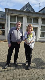Bürgermeister Lars Denninghoff mit Elke Neumann, die zum 01. März 2026 ihren wohlverdienten Ruhestand antritt