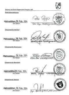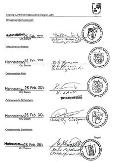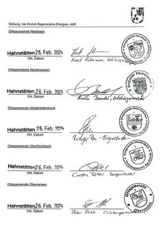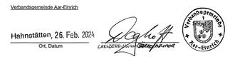 (2) Der/Die Vorstandsvorsitzende unterzeichnet ohne Beifügung eines Vertretungszusatzes, die Stellvertretung mit dem Zusatz „In Vertretung“, andere Vertretungsberechtigte mit dem Zusatz „Im Auftrag“. Erklärungen des Verwaltungsrats werden von dem/der Vorsitzenden oder im Verhinderungsfall von der Stellvertretung unter der Bezeichnung „Aar-Einrich Regenerative Energien, Anstalt des öffentlichen Rechts“ abgegeben.
