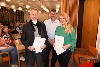 Im Rahmen der letzten Sitzung des Verbandsgemeinderates am 06. März 2023 überreichte Bürgermeister Lars Denninghoff (Mitte) die Ehrenamtskarte des Landes Rheinland-Pfalz sowie eine Dankurkunde der Verbandsgemeinde Aar-Einrich an die Eheleute Angela (r.) und Jens (l.) Hanson aus Hahnstätten. Sie erhielten die Ehrenamtskarte für ihr ehrenamtliches Engagement im Bereich „Umwelt“ im Vorstand der SaveClimate.Earth e.V. Dort sind sie seit August 2020 bis zu 20 Stunden wöchentlich für die Organisation und Durchführung von Informationsveranstaltungen und Mitgliederversammlungen sowie für die Öffentlichkeitsarbeit tätig. Weiterhin erhielt Stefan Heiland aus Kaltenholzhausen für sein ehrenamtliches Engagement im Bereich „Feuerwehr/Rettungsdienst/Katastrophenschutz“ die Ehrenamtskarte des Landes Rheinland-Pfalz. Er engagiert sich seit November 2009 mit durchschnittlich 250 Stunden pro Jahr als aktives Mitglieder der Freiwilligen Feuerwehr sowie im Vorstand des Fördervereins der Freiwilligen Feuerwehr Kaltenholzhausen. Da er zur Übergabe verhindert war, wurde ihm die Karte zugestellt. Erhalten kann die Ehrenamtskarte auf Antrag, wer mindestens 14 Jahre alt ist, sich durchschnittlich mindestens fünf Stunden pro Woche bzw. 250 Stunden im Jahr ehrenamtlich engagiert und dafür keine pauschale finanzielle Entschädigung erhält. Erstattungen tatsächlich angefallener Kosten für Telefon, Büromaterial, Fahrtkosten usw. zählen nicht zu den pauschalen Entschädigungen. Die freiwillige Tätigkeit kann auch bei unterschiedlichen Trägern erfolgen. Voraussetzung ist auch, dass das Ehrenamt auf eine längere Dauer angelegt ist und im Regelfall bereits mindestens ein Jahr ausgeübt wird. Die ehrenamtskarte hat eine Gültigkeit von zwei Jahren und kann nach Ablauf erneut beantragt werden. Mit der Ehrenamtskarte können die Inhaber landesweit sämtliche Vergünstigungen in Anspruch nehmen. Im Bereich der Verbandsgemeinde Aar-Einrich sind dies