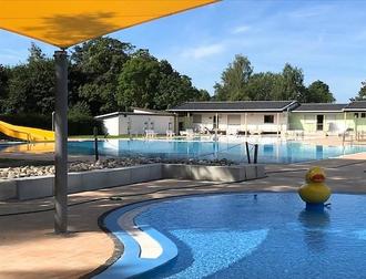 Mit Wasserflächen von 495m² im Nichtschwimmerbecken, 324m² im Schwimmerbecken und einem Planschbecken mit 66m² bietet das Freibad vielfältige Möglichkeiten.