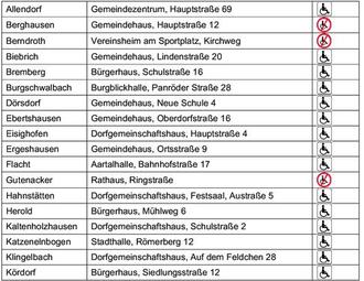eingerichtet. Die Wahlräume zur Erleichterung der Teilnahme an der Wahl für körperlich beeinträchtigte und andere Menschen mit Mobilitätseinschränkungen sind gekennzeichnet. In der Wahlbenachrichtigung, die den Wahlberechtigten bis zum 19. Mai 2024 zugestellt wurde, sind Wahlbezirk und Wahlraum angegeben, in dem die Wahlberechtigten zu wählen haben. Die Wahlberechtigten können nur in dem Wahlraum des Wahlbezirks wählen, in dessen Wählerverzeichnis sie eingetragen sind. Die Wählerinnen und Wähler haben ihre Wahlbenachrichtigung und ihren amtlichen Personalausweis - Unionsbürger einen gültigen Identitätsausweis oder Reisepass - mitzubringen. Die Wahlbenachrichtigung soll bei der Wahl abgegeben werden; ggf. wird die Wahlbenachrichtigung für eine etwaige Stichwahl an die Wahlberechtigten zurückgegeben.
