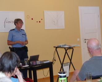 Ob am Telefon, an der Haustür oder online – Betrugsversuche richten sich nicht nur an ältere Menschen. Senioren sind von Straftaten nicht öfter betroffen als andere Altersgruppen. Demgegenüber haben die zunehmende öffentliche Diskussion und die Aufbereitung in den Medien den Eindruck entstehen lassen, insbesondere Gewalt richte sich in wachsendem Maße gegen ältere Menschen. Dabei sind es andere Straftaten, die vor allem Senioren treffen, wie der Trickbetrug beispielsweise. Aber: Jeder kann betroffen sein. Sie hatte Filmmaterial dabei, die einen „falschen Polizisten“ an der Haustür zeigte. Sie forderte auf, nach dem Dienstausweis oder nach der Dienstmarke zu fragen. Auch Tonbandaufnahmen eines Schockanrufes spielte sie ihrem Zuhörerkreis vor. Wer das schon einmal erlebt hatte, bekam Gänsehaut. Sie berichtete, dass sie genug Fälle kenne, bei denen Geld an die Betrüger geflossen sei. In den meisten Fällen erkennen die Angerufenen jedoch, dass etwas „nicht mit rechten Dingen zugeht“. Sie nannte Beispiele, wie die Forderung nach einer Kaution, die in Deutschland absolut unüblich sei. Auch werden Angehörige bei einem Verkehrsunfall oder einem schlimmen Ereignis von der Polizei nicht per Telefon informiert. „Handeln wir aus Dummheit oder aus einer akuten Stresssituation heraus falsch? Sicher eher aus Angst, Sorge oder Fürsorge, aus Hilfsbereitschaft oder Respekt vor ‚vermeintlichen‘ Amtspersonen, die das Vertrauen in die Gutgläubigkeit ihres ‚Gegenübers‘ ausnutzen.“ Tanja Hoppen gab einfache, leicht anwendbare Tipps. Forderte aber auch auf, sich „einen Hauch von Skepsis“ zu bewahren und Misstrauen aufzubauen, im Zweifel selbst die Polizei anzurufen, Telefonbucheinträge zu löschen oder zu kürzen, einen Anrufbeantworter oder eine Mailbox einzuschalten, oder unbekannte Rufnummern zu ignorieren. Die Polizei ruft niemals mit der Telefonnummer 110 an, sie fordert niemals Bargeld oder Wertsachen. Die Palette der Betrügereien ist breit. Sie berichtete auch zu der verbreiteten Nachricht auf WhatsApp, bei der die Eltern oder Großeltern erfahren, dass Kinder oder Enkelkinder eine neue Nummer haben. Sie forderte auf, keine privaten Daten weiterzugeben, keine Bankkonten, keine Kreditkartennummern, keine Passwörter.