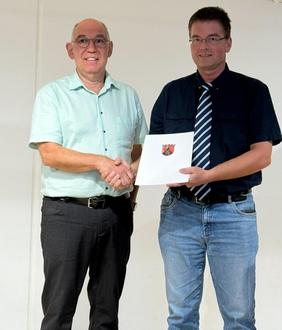 Achim Lehnert (links) wurde von Regierungsschuldirektor Jürgen Stahl (rechts) von der Aufsichts- und Dienstleistungsdirektion (ADD) aus Trier in den Ruhestand verabschiedet.