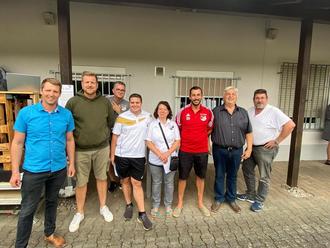 Die Siegerehrung der besten Fußballmannschaften am Finaltag des Fußballturniers der Verbandsgemeinde Aar-Einrich, welches in diesem Jahr in Burgschwalbach ausgetragen wurde, nutzten Bürgermeister Lars Denninghoff und der 1. Beigeordnete Marcel Willig, um fünf besonders ehrenamtlich engagierten Mitgliedern des ausrichtenden TuS Burgschwalbach die Ehrenamtskarte des Landes Rheinland-Pfalz zu überreichen.