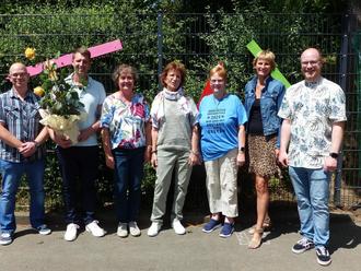 Im Rahmen einer kleinen Feierstunde zu Beginn der Sommerferien verabschiedeten die Lehrerschaft der Grundschule im Einrich Katzenelnbogen sowie Kolleginnen und Kollegen der Verbandsgemeinde Aar-Einrich als Träger der Grundschule, Gabriele Lehr nach 17jähriger Tätigkeit als Schulsekretärin in den Ruhestand. Für sie beginnt am 01. August 2024 ebenso wie für Gesine Müller, die nach 31 Jahren als Lehrerin die Grundschule in Richtung Ruhestand verlässt, ein neuer Lebensabschnitt. Nach ihrer Ausbildung als Drogistin arbeitete Gabriele Lehr mehrere Jahre in ihrem Beruf, bevor sie sich der Betreuung und Erziehung ihrer Kinder widmete. Anschließend war sie nach einer Ausbildung als staatliche geprüfte Fremdsprachensekretärin in verschiedenen Firmen als kaufmännische Angestellte tätig, bevor sie am 01.12.2007 als Schulsekretärin in der Grundschule im Einrich eingestellt wurde. Zum Abschied hatte die Lehrerschaft ein Lied - angelehnt an „Wie ein Komet“ - eigens für die scheidende Schulsekretärin vorbereitet. Rektor Julian Färber bezeichnete Gabriele Lehr als eine Konstante, die in den 17 Jahren ihrer Tätigkeit in der Grundschule im Einrich immer für die Schülerinnen und Schüler da war, herausfordernde Situationen wie die Digitalisierung gemeistert sowie vier Schulleitungswechsel überstanden hat und dabei immer offen gegenüber Neuem geblieben ist. Hierfür dankte er Gabriele Lehr ebenso herzlich wie die Personalratsvorsitzende der Grundschule Bärbel Redmer im Namen des Kollegiums und der Kinder, die die scheidende Schulsekretärin als wichtigen Ankerpunkt darstellte, den das Kollegium benötigt. Florian Spitz dankte im Namen des Personalrates der Verbandsgemeinde Aar-Einrich und gab ihr die besten Wünsche für die Zukunft mit auf den Weg. Der 1. Beigeordnete der Verbandsgemeinde Aar-Einrich Marcel Willig nutzte in Vertretung von Bürgermeister Lars Denninghoff die Gelegenheit, Gabriele Lehr für die gute Zusammenarbeit in der Schnittstelle zwischen Verwaltung und Schule zu danken: „Aus eigener Erfahrung weiß ich, wie wichtig die Schulsekretärin als Anlaufstelle für Lehrerschaft, Kinder und Verwaltung ist und wie vielfältig die Aufgaben sind.“ Für die bevorstehende hoffentlich ruhigere Zeit wünschte er ihr alles Gute, vor allen Dingen Gesundheit, Glück und Zufriedenheit.