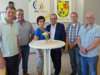 v.l. 1. Beigeordneter Marcel Willig, Büroleiter Thomas Biebricher, Ehefrau Christina Welker, Uwe Welker, Büroleiter Stefan Nickel sowie Florian Spitz vom Personalrat