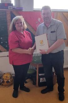 Am 17. Juli 2025 konnte Sabine Schweitzer ihr 25jähriges Dienstjubiläum im öffentlichen Dienst feiern. Nach ihrer Ausbildung zur Erzieherin war sie zunächst als Gruppenleiterin in verschiedenen Kindergärten sowie als Betreuerin der Kinderkurklinik Viktoriastift der Diakonie beschäftigt, bevor sie im September 1992 ihre Tätigkeit zunächst in der Kindertagesstätte (Kita) in Schönborn begann. Bereits im August 1993 übernahm sie die Leitung des neu gegründeten Kindergartens in Allendorf. Nach einem Sonderurlaub von 1995 bis 2003 mit Auslandsaufenthalt in den USA nahm sie im August 2003 wieder ihre Tätigkeit als Erzieherin in der Kita Schönborn auf, deren Leitung sie im November 2010 übernahm, bevor sie im Januar 2023 als Erzieherin in die Kita Kördorf wechselte. Bürgermeister Lars Denninghoff überreichte Sabine Schweitzer eine Dankurkunde sowie einen Aar-Einricher Gourmetgutschein und sprach ihr im Beisein des Büroleiters Stefan Nickel, dem Personalratsmitglied Lars Laeven und der Kindergartenleiterin Kerstin Winter-Koch für die der Allgemeinheit geleisteten treuen Dienste Dank und Anerkennung aus.