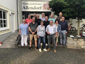 Gemeinderat Allendorf, es fehlt Madeleine Stubenrauch, Ortsbürgermeisterin Martina Schrage und der geehrte Klaus Stein (3. Und 4. Vordere Reihe v.l.) und Ingo Brod, Beigeordneter der VG Aar-Einrich (1. v.r. mittlere Reihe)