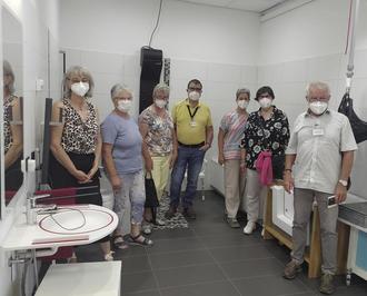 Herr Michael Dreyer und Herr Josef Lechner von Bell-WI, Frau Christine Simon sowie ein Teil der Teilnehmerinnen im Badbereich
