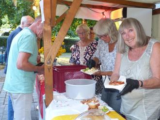Was zwei Jahre lang während der Corona-Pandemie nicht möglich war, geht in diesem Jahr wieder: Es sich mit Freunden unbeschwert auf einem Weinfest gut gehen zu lassen. Weinfeste sind in traditionellen Weinanbaugebieten seit langen Jahren Tradition. Warum nicht den Wein nach Katzenelnbogen bringen und ihn hier auf der Weiherwiese gemütlich mit Freunden kosten. Das Angebot hielt für jeden Besucher etwas Passendes bereit. Natürlich auch alkoholfreie Genüsse, wie die verschiedenen Secco-Spezialitäten der Firma Herolder Fruchtgenuss, die es mit und ohne Alkohol gab, Adams kleiner Weinladen und Vinothek aus Berndroth waren da, hier konnten die Besucher vielfältige Weine aus dem Rheingau, wie den Riesling und Spätburgunder Rosé, oder Grauer Burgunder aus der Weinmanufaktur Gengenbach Baden, einen „Lausbub weiss“ aus Ungstein/Pfalz genießen. Das Weingut Eisenbach und Korn mit Helga und Gregor Kilian aus Katzenelnbogen hielt Riesling und Rosé trocken und feinherb, oder auch Chardonnay feinherb, Spätburgunder oder trockenen Rotwein bereit. Der Deutsch-Französische Freundeskreis bot zwei Weine, einen Rosé und einen Rotwein aus der Partnerschaftsregion in Südfrankreich an. Ingrid Schaefer betonte, dass es sich hier eher um eine Präsentation des Vereins oder eine Imagekampagne handele als um eine Konkurrenz zu den Weinhändlern. Einen großen Zuspruch erfuhren die Landfrauen mit ihren leckeren Käsespezialitäten und die „alten“ Kirmesväter aus Katzenelnbogen mit Bratwürstchen. Der TuS Katzenelnbogen/Klingelbach bot ebenfalls Wein aus dem Rheingau an.