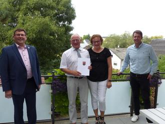 v.l. Landrat Jörg Denninghoff, Harald und seine Frau Renate Gemmer, 1. Beigeordneter Marcel Willig
